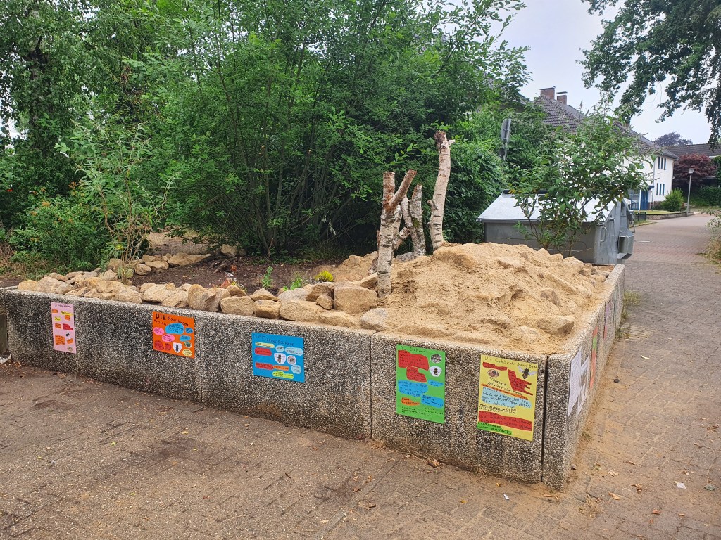 Die Anne-Frank-Realschule in Ibbenbüren hat ihr InNature im Mai 2022 fertiggestellt. Über einen kleinen Pfad kann man durch das InNatue laufen, ohne die grabenden Wildbienen zu gefährden! Wir haben eine tolle Rückmeldung von Schüler*innen und Eltern bekommen, was uns sehr freut. Das ist das Ergebnis einer guten Zusammenarbeit mit Frau Farwig, die das InNature Projekt mit Begeisterung begleitet.