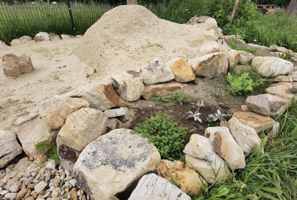 Hier können sich nun große Populationen von bodennistenden Wildbienen und andere Insekten wie auch friedliche Grabwespen ansiedeln.