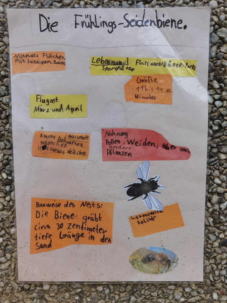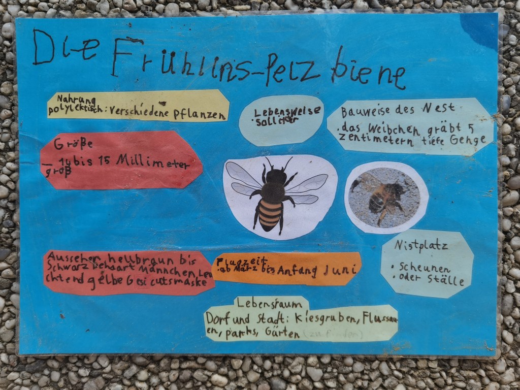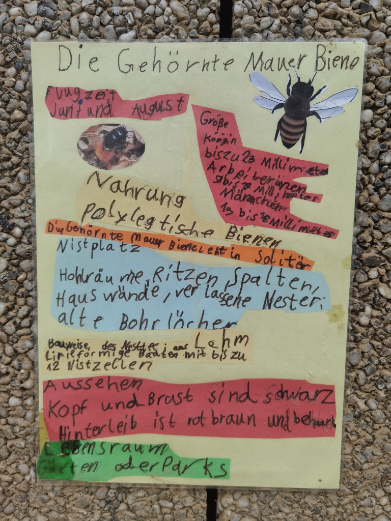 Auch Grundschulen können am InNature Projekt teilnehmen. Mit einen angepassten Workshop für die jüngeren SchülerInnen und der Unterstützung von Lehrern und Eltern, wurde hier im Juni 2022 ein toller Wildbienenlebensraum im Hochbeet erbaut. Frau Böwer hat das Projekt begleitet und mitorganisiert. Ganz besonders toll sind die vielen Informationen, die die Schüler wunderschön ausgearbeitet und am InNature angebracht haben. Herzlichen Dank für eure tolle Leistung!