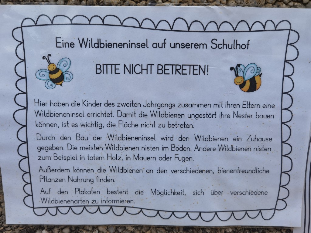 Die Grundschüler aus der Johannes-Bosco-Schule haben im Rahmen der Projektwoche „Johannes-Bosco Kids for future“ diese schöne Wildbieneninsel gebaut. Die Motivation und das Engagement der jungen Wildbienenschützer hat uns beeindruckt.