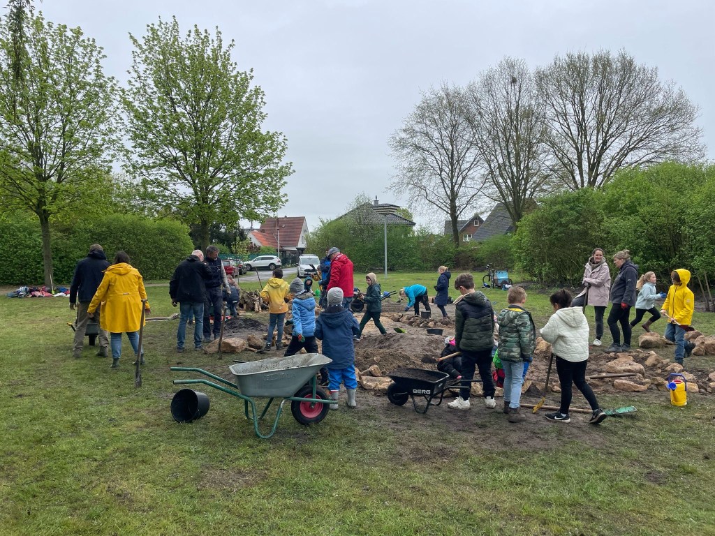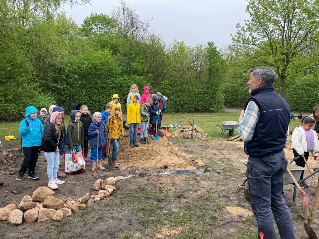 Die Don-Bosco-Förderschule in Recke hat den Bau des eigenen InNatures im April 2022 begonnen und wurde hierbei sogar von einem Kamerateam der WDR Lokalzeit Münsterland begleitet. Beim Verfüllen des Lochs mit dem Lehmsand standen Schüler Arm in Arm im Kreis und hüpften den Sand mit den Füßen fest. So geht gelebte Gemeinsamkeit für einen Lebensraum, für ein sinnvolles Projekt.